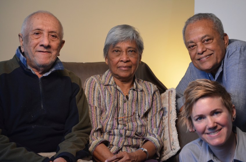 DSC_0143 Published February 7, 2016 at 4928 × 3264 in DSC_0143 Sri Lanka Malay speakers Davis and Zowriya Jayman with ELAT’s Mohamed Jaffar and Anastasia Riehl. January 28, 2014.